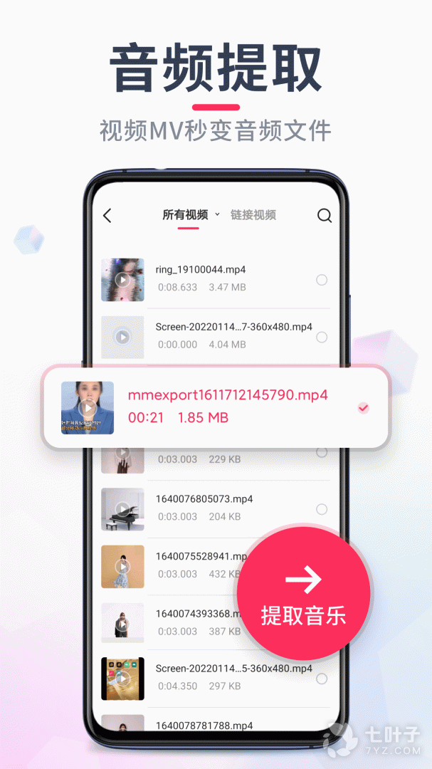 1、音频裁剪大师目前支持mp3、flac、m4a、wma等格式音频文件的截取制作,软件操作简单支持无缝拼接还能直接进行视频导入从中提取出自己需要的音乐内容通过裁剪、合并、混合、转换等功能打造出你自己喜欢的音乐内容并且分享给其他用户