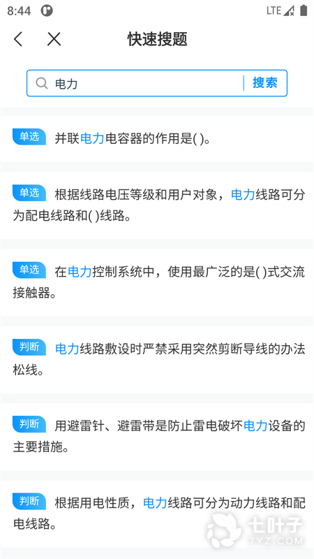 2、电工考试宝典,准电工必备的考试宝典。软件里面全是题,覆盖电工各类必考知识点,包括低压电/高压电工作、防爆电气、电气试验、继电保护、电力安全工作规程等,电力知识、操作知识、安全规范等方面的题库全都具备,用户可以在软件内尽情的吸收知识刷题