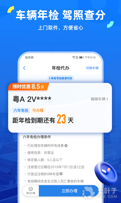 3、天足不出户无忧处理违章,违章代办免服务费,省钱省时省力