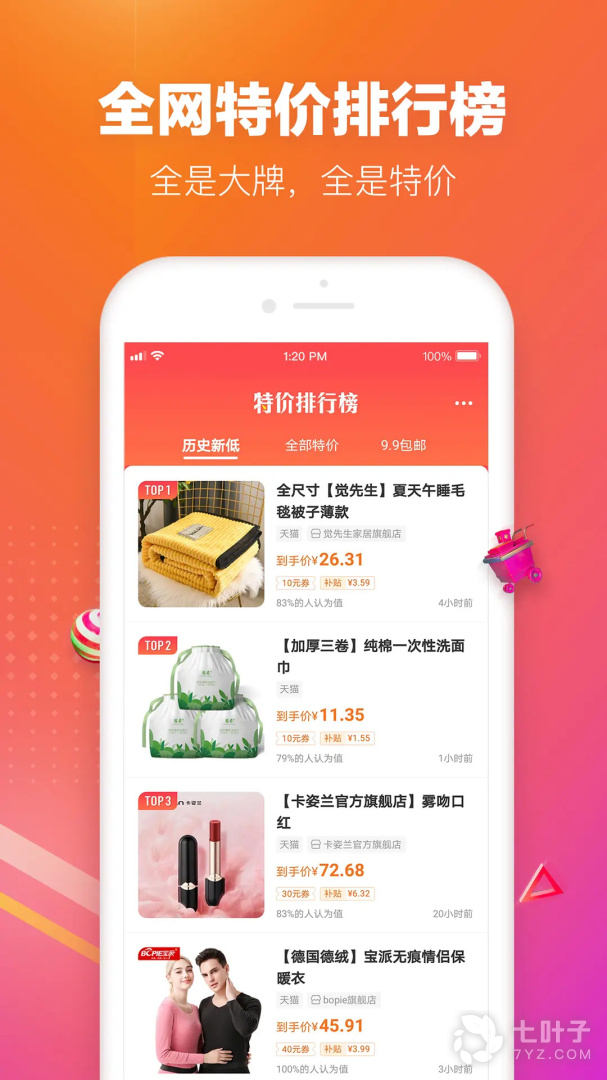 3、每一款都是人工精挑细选审核,9.9元包邮、品牌特价、神价格、历史新低价不在话下天天包邮,低价不停,历史低价app让你体验一站式优惠购买,不必切换周转在不同网站中循循比较