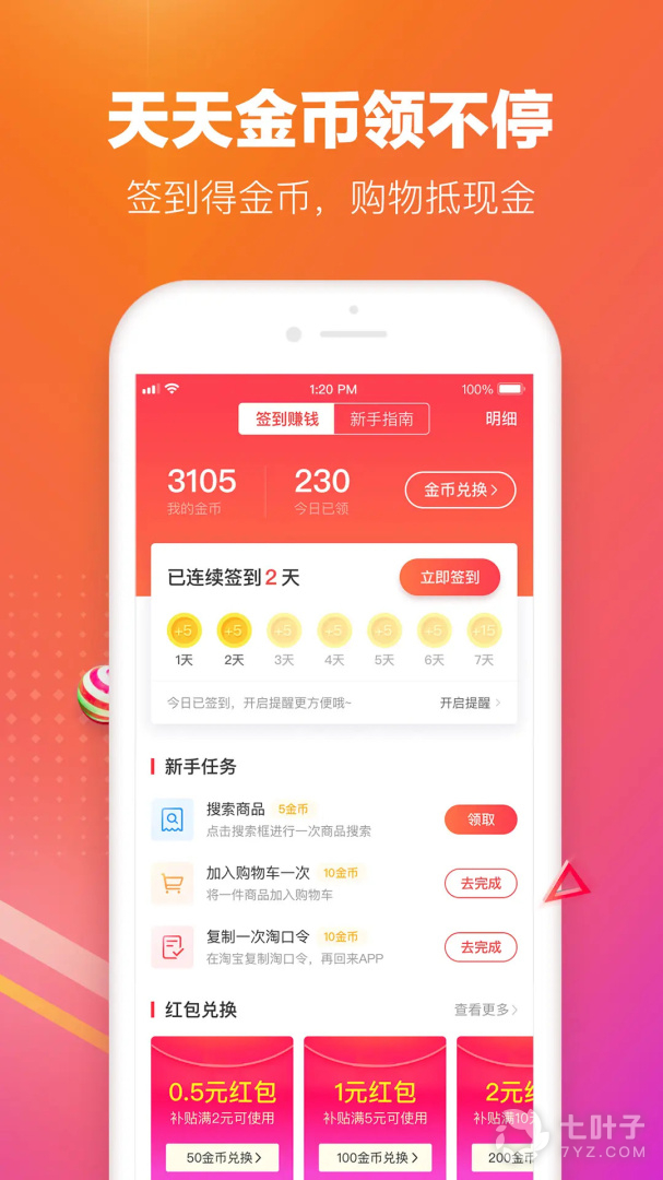 每日签到领金币,兑换100元现金红包等你来拿。