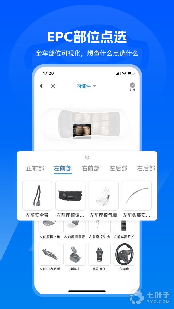 2.支持50多个汽车品牌的EPC车辆结构图数据查询, 汽车配件结构信息一目了然。