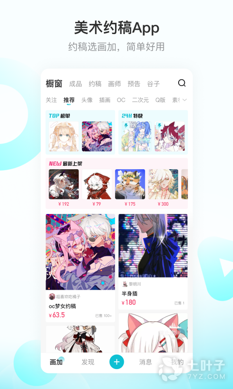 3、由网易打造的一款约稿平台画加带给大家,这款软件中有着很多的画师,还有大量的绘画订单,大家可以在这里自由接单,接单后还可以在线与客户进行绘画的沟通,赚取一定的稿费,此外这里还可以与其他用户一起交流绘画经验哦