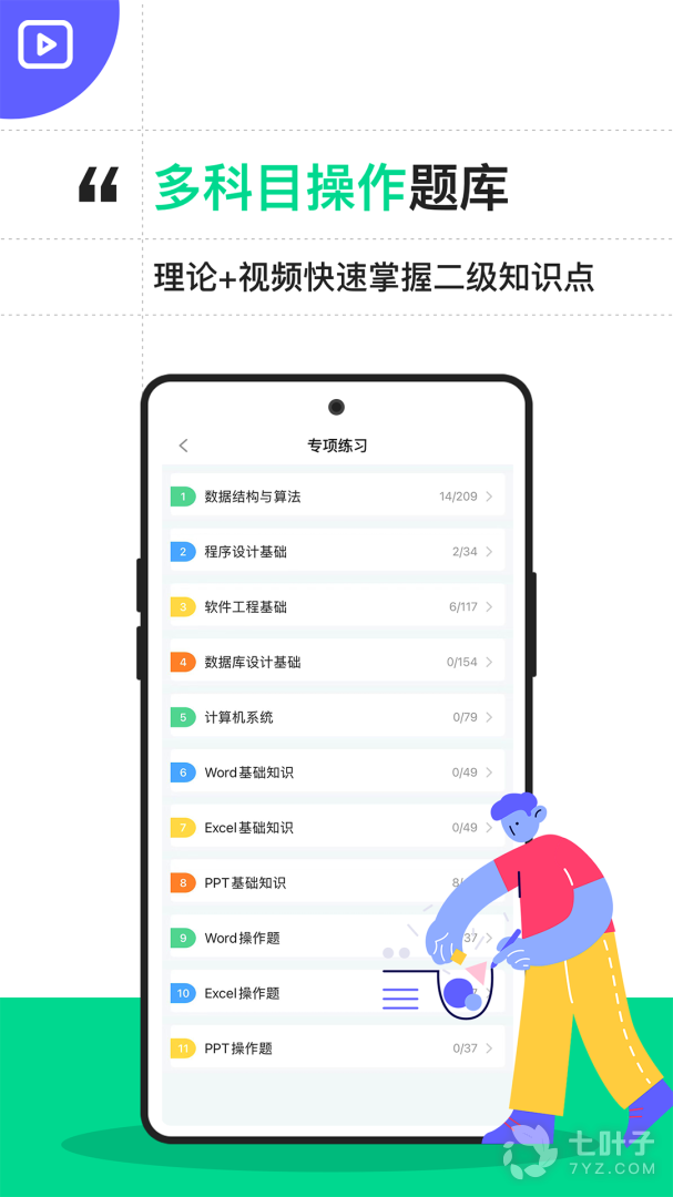 1、专为需要考取计算机二级证书的伙伴设计的,汇集了海量二级考试所有知识内容,拥有多样化的题型,帮助用户制定每日习题计划,监督用户完成,需要的伙伴