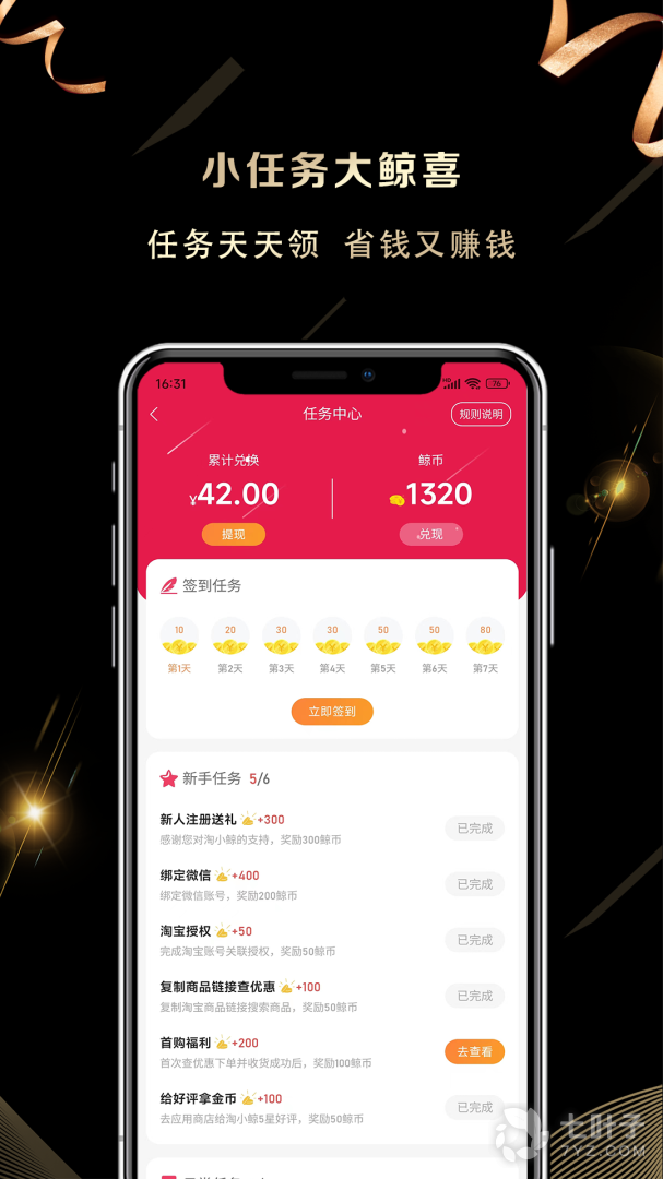 1、淘小鲸app是很多喜欢网购的朋友非常好的选择,它不仅可以购物省钱,还能购物返利,平台也有大量的福利给大家,只要你能按时完成任务就能领取很多奖励,而且还有多重会员权益,让你享受更多的VIP好礼,大家喜欢的话可以来下载哦