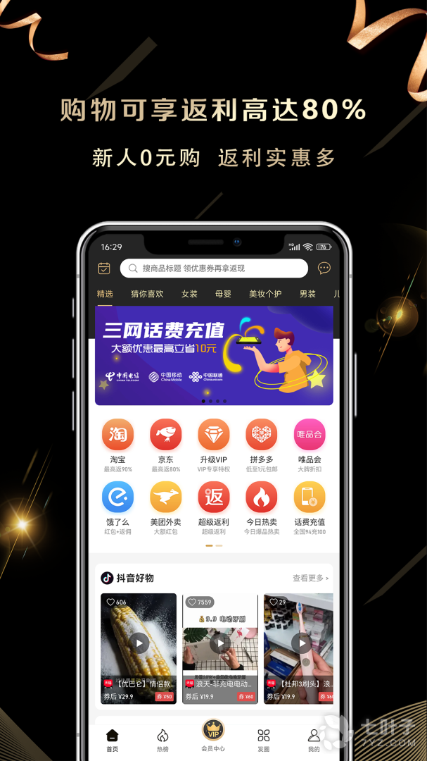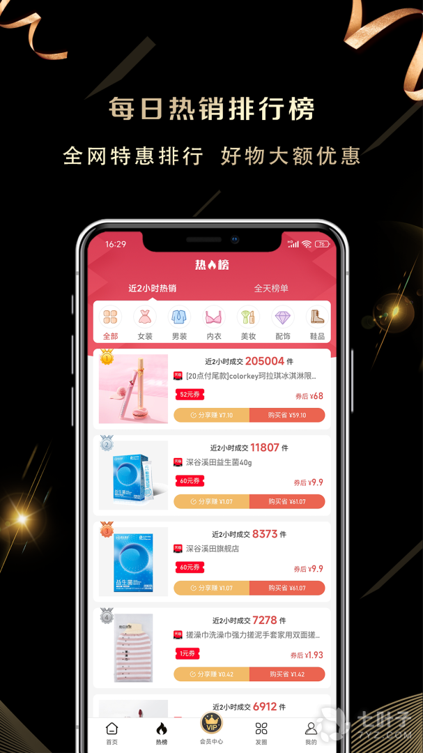 1、多种板块,多种风格:咚咚抢,小编说,9.9包邮,每日半价,疯抢排行,今日上新。每天数万款白菜价优惠券商品、值得买的好货迎合每位用户喜爱