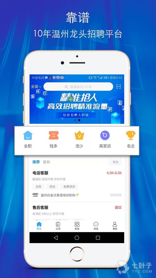 2、专为温州地区本地市民所打造,这里提供了海量优质的工作岗位,安全可靠,可以任意挑选你喜欢的工作,感兴趣的欢迎前来下载体验