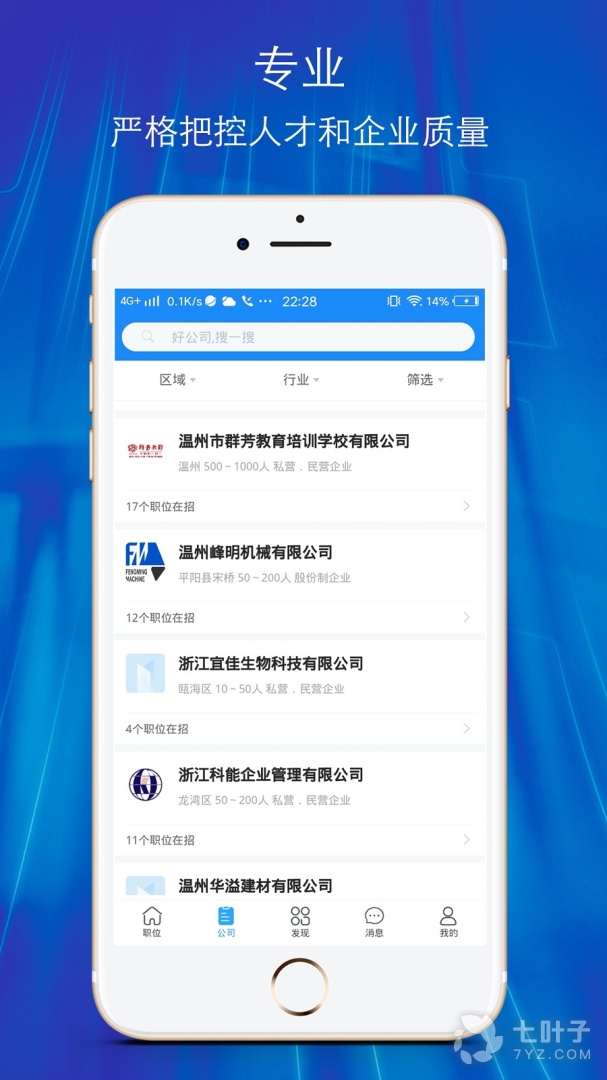 3、你还在为不知道去哪找工作而烦恼吗?温州招聘网APP专门为温州本地的小伙伴们所打造,软件内入驻了非常多本地优秀的企业,为大家提供了丰富的工作岗位,各种类型的职位这里全都有,大家可以根据自己的情况选择求职。软件内所有企业和岗位信息都经过严格的审核,绝对安全靠谱