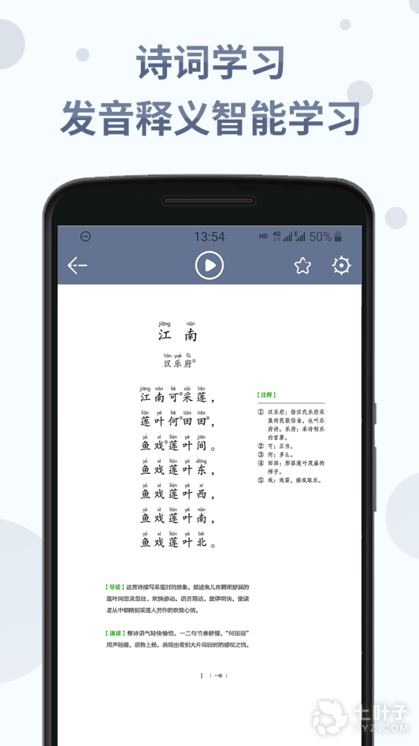 诗词分级诵读在您阅读古诗词的时候可以纠正不正确的古诗发音,让你用最正确的发音方式朗读古诗词;每一首古诗词都有相应的释义,帮助学生把握每一首古诗词的意思,体会诗人在写作时候的心情;以分级诵读的方式学习古诗词,规划学习方式,用更舒适的方式学习中国古诗词。