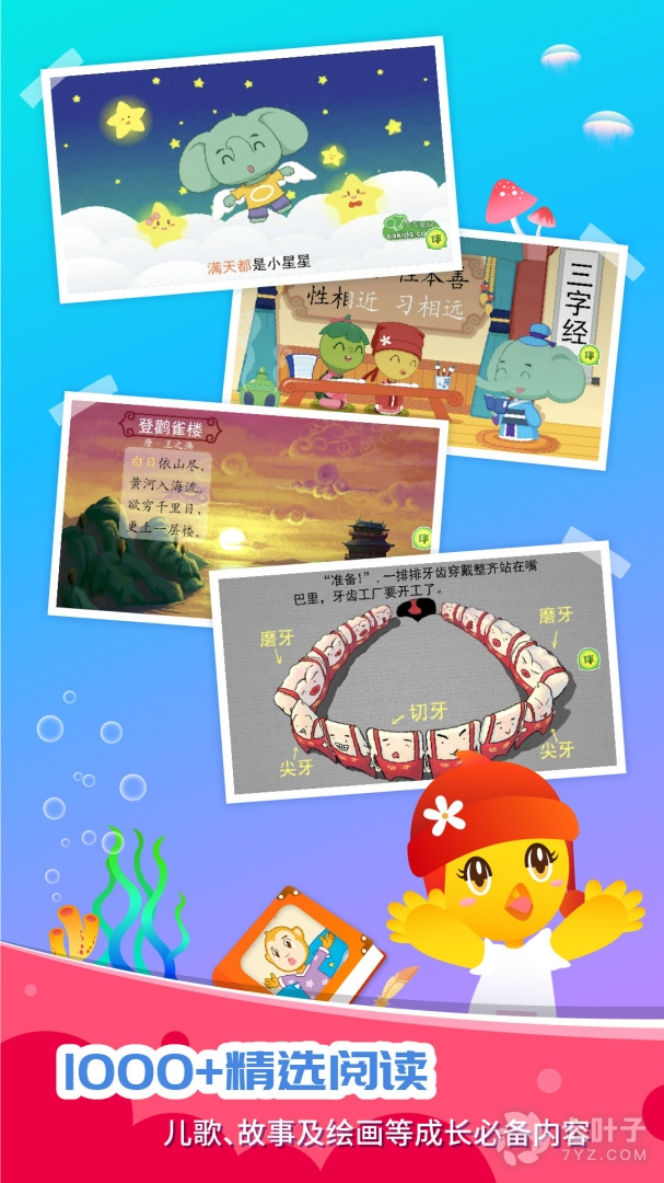 3、该软件给用户提供了非常丰富启蒙课程,不仅提供了儿童故事而且还有汉字,让用户可以在这里尽情的学习,给孩子提供更好的成长空间,促进他们快乐健康的成长