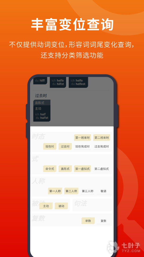详尽的动词变位,形容词词尾变化,名次单复数变化解释
