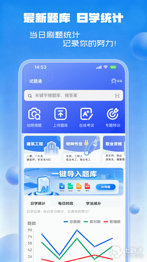 2、涵盖了各行各业的考试题目,试题通app还可以导入自己的题库轻松做题,支持在线索索答案,学习各种试题库,轻松通过考试