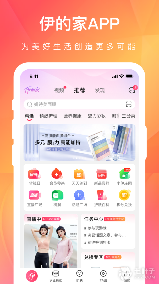 1.商品浏览购买、2.伊日惠、3.手机充值、4.即时聊天、5.肌肤测试、6.护肤空间......