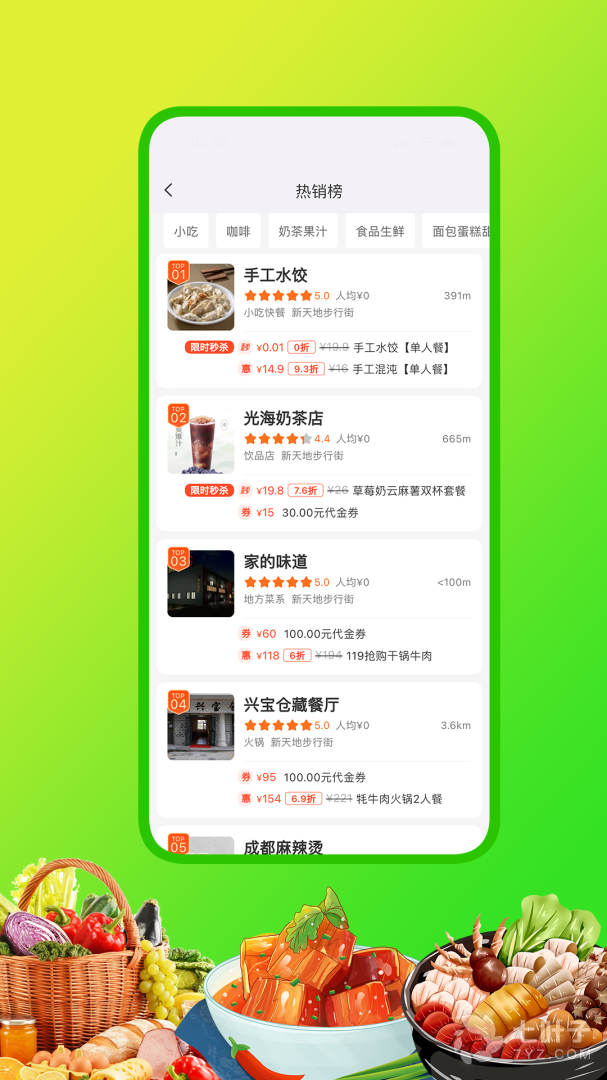 2、用户还可以在首页看到附近的商家,可以挑选自己的喜欢的进行点餐。