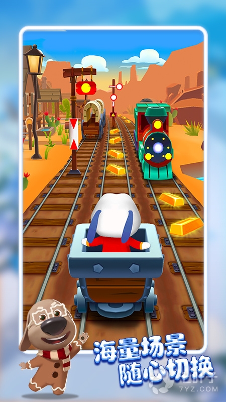 跑酷追强盗,汤姆猫跑酷各种场景无穷无尽,让我们一探究竟吧!在各式精采场景中跑酷追金,与众多免费角色和特别角色一起狂奔,尽情狂欢!就是现在!你还在等什么?快和所有你最爱的汤姆猫家族角色一起快乐出发吧!