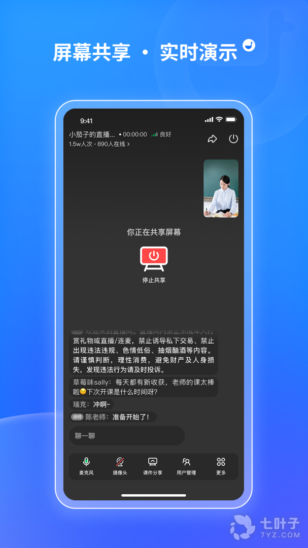 1、主要功能:实时视频直播、语音直播、PPT直播、白板画笔、课件展示、直播带货、打赏、评论互动等