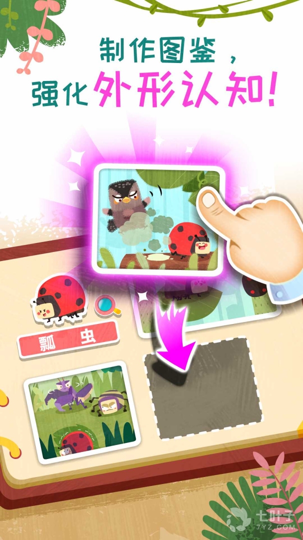 成功找到昆虫,获得贴纸。宝宝根据昆虫外形,动手又动脑,完成拼图。拼图里面还有惊喜等宝宝发现哦!
