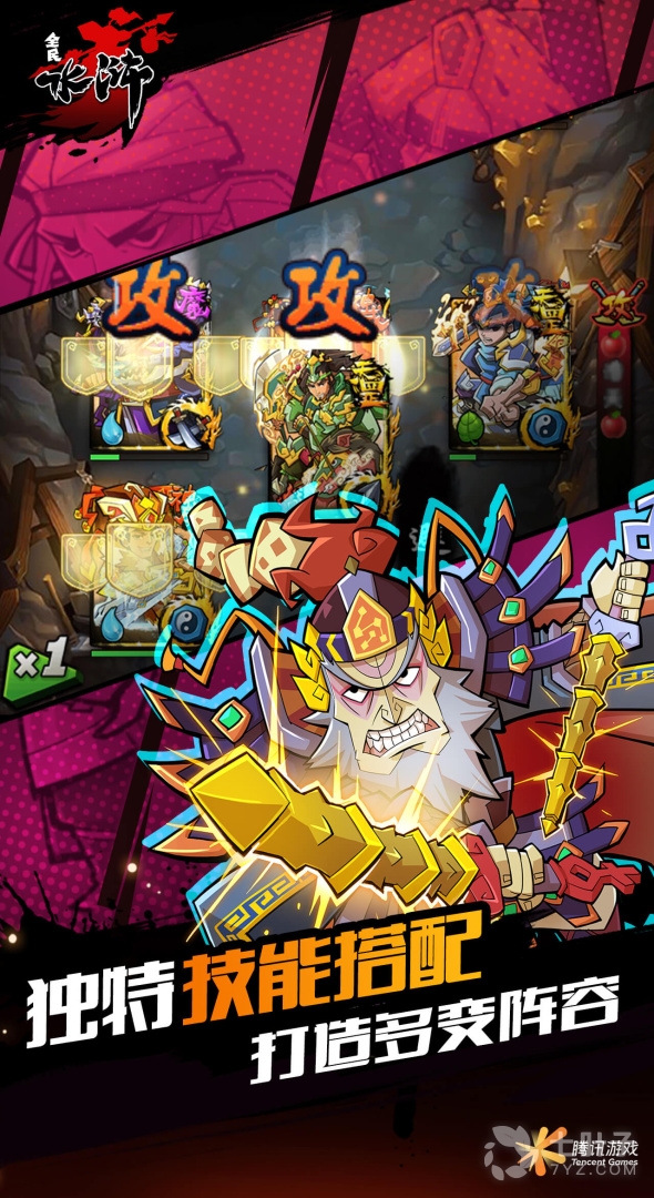 2、全民水浒是腾讯手游集大成之作,是一款超爽快卡牌战斗游戏。戏里聚合了如RPG等流行的游戏元素,保留了原始的卡牌玩法,在战斗、卡牌、策略等方面,都有着特殊的体验