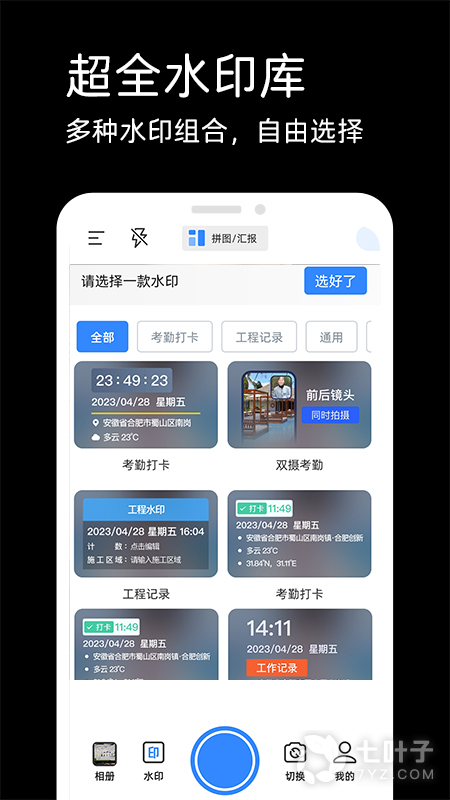 1、工地工作水印打卡,以及工程记录水印的添加,还有运动打卡水印添加等等,这个水印相机的水印功能还是非常强大的,用户们可以利用这个软件的水印添加功能来为自己实现便捷的工作考勤水印打卡,用来记录自己的工作成果