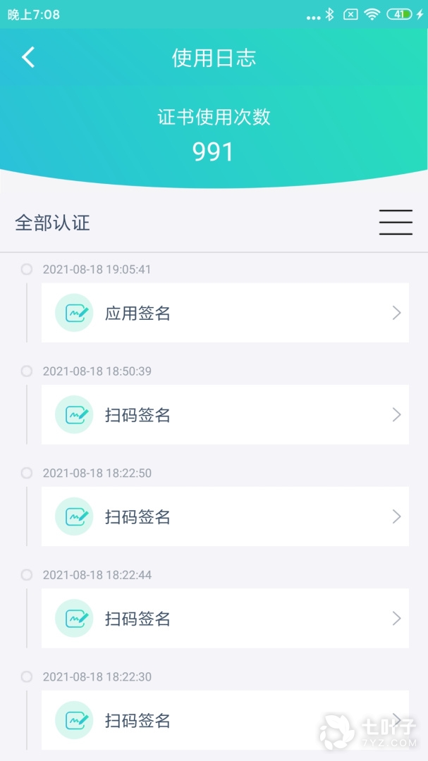2、使用日志,对证书的使用情况进行了记录,可随时查看到使用详情
