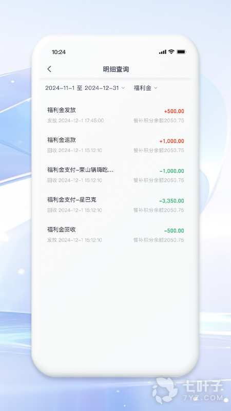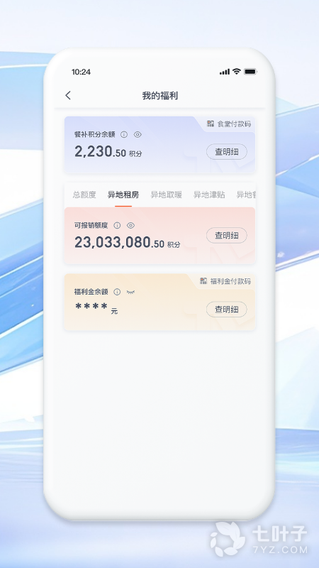 1. 我的福利:涵盖员工通用积分、可报销额度、交通租房补贴等福利积分及福利金