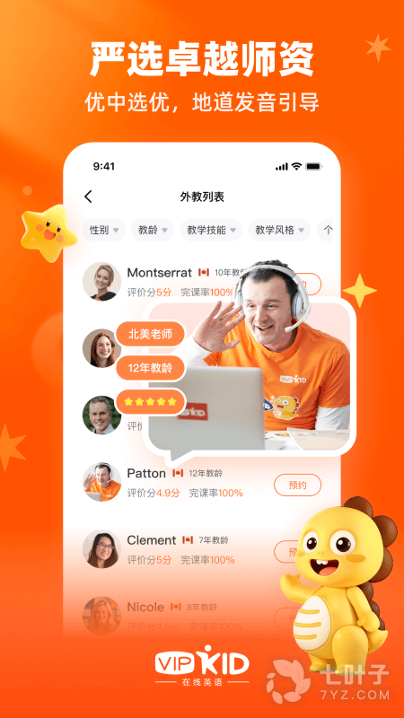 2、师资承诺:VIPKID一贯坚持“纯北美外教,纯美国课程标准”的教学理念,我们保证外教的优质教学水平