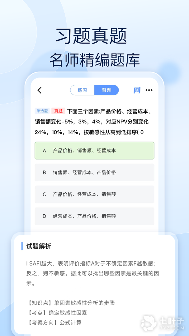 3、它是专门为参加经济师考试的朋友准备的。软件拥有海量的题库资源,包含了每日一练、专项练习、历年真题等,打击可以通过刷题来检验自己的所学知识。并且还提供了错题巩固和学习报告等版块,让学习更有针对性,这样才能更好的提升自己的成绩