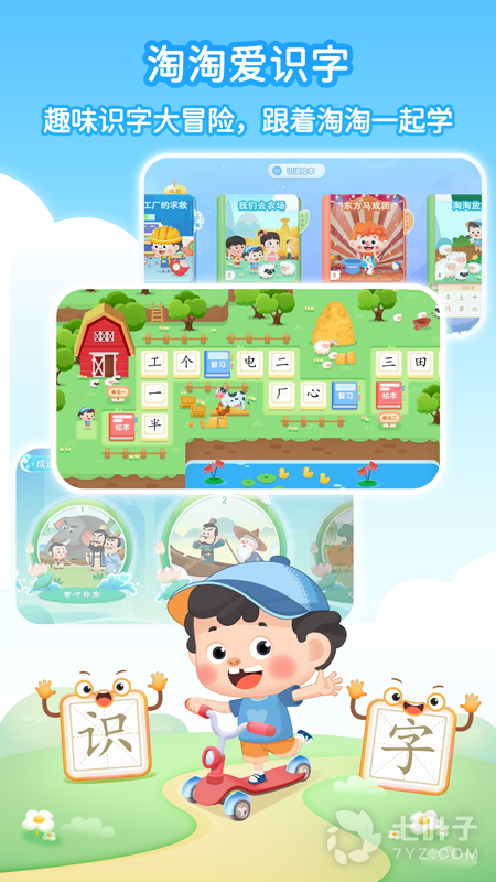 2、淘淘爱识字下载,一款优质实用的儿童汉字启蒙学习小助手,通过淘淘爱识字有趣多元的情景教学内容,轻松快乐学习汉字,科学设计寓教于乐