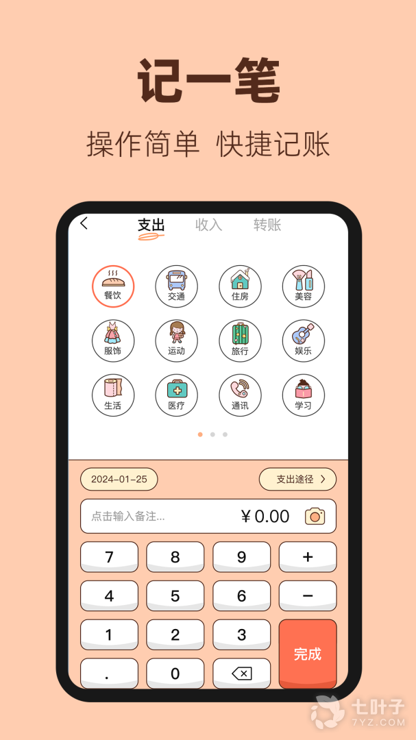 4、独特的一键记账功能,无论是餐饮、交通还是日常购物,只需轻轻一点,收支瞬间记录,省时高效