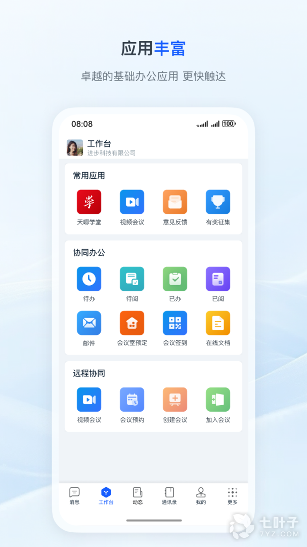 1、功能非常的强大,一部手机就可以简单的办公,很好的提升办公的效率,团队开会不用人到场,直接用这款软件就可以进行开会,所有的办公数据都能查看,让大家更高效的办公