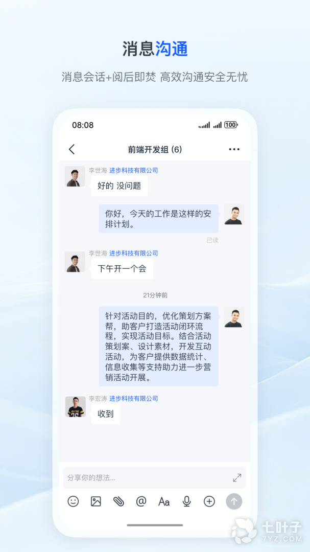 3、群聊天、群任务、群文件,强大的群组协作,拒绝低效。