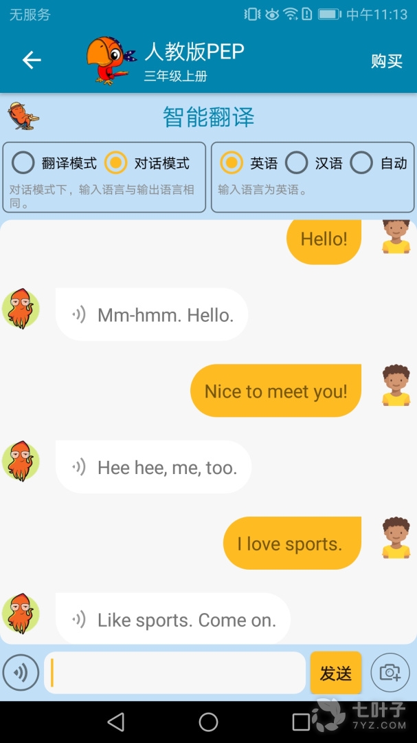 5、支持与机器人小鱿进行人工智能(AI)对话和自动翻译,并支持拍图识别对话模式,可以拍摄加重任意物品和小鱿进行自由对话,是英语学习的智能陪练小助手