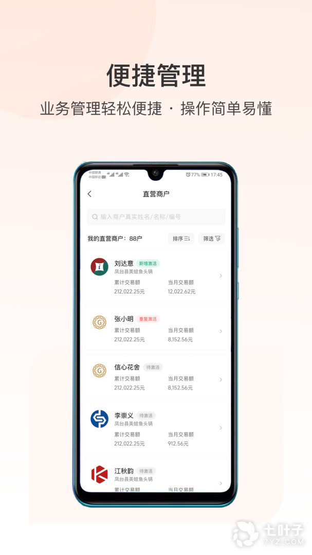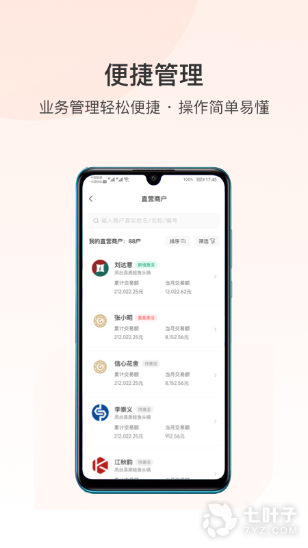 帮助用户进行数据统计,随时可以更好的拓展商户和管理业务。操作便捷移动,各种数据统计清晰直观,为服务商带来更加高效的移动办公体验。