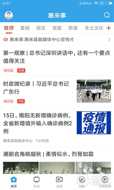 2、惠来事最新版,广东惠来县官方新闻客户端。软件拥有新闻、直播、电视、生活服务等功能,以最全面的姿态为用户提供惠来新面貌,打造掌上权威服务窗口
