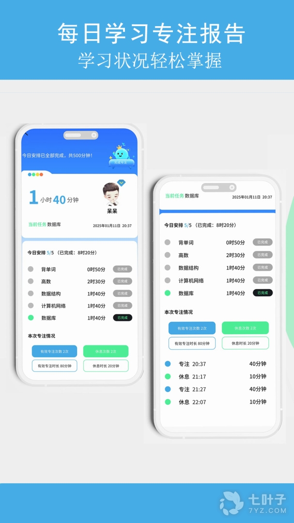 3、自习室,轻松应在学习气氛。学习状态(锁机状态、专注数据、白名单app运行状态)的公开展示,深层模拟真实的学习氛围