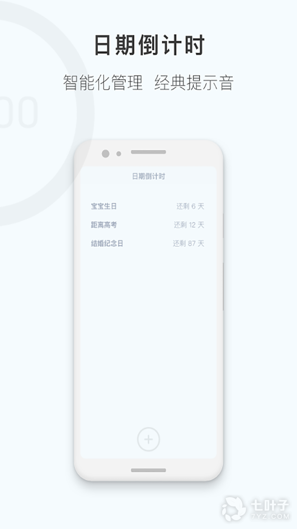 2、日期倒计时,内置竖琴、警报、阶梯、飞跃多款经典提示音,让您不再错过任何一个重要的日子