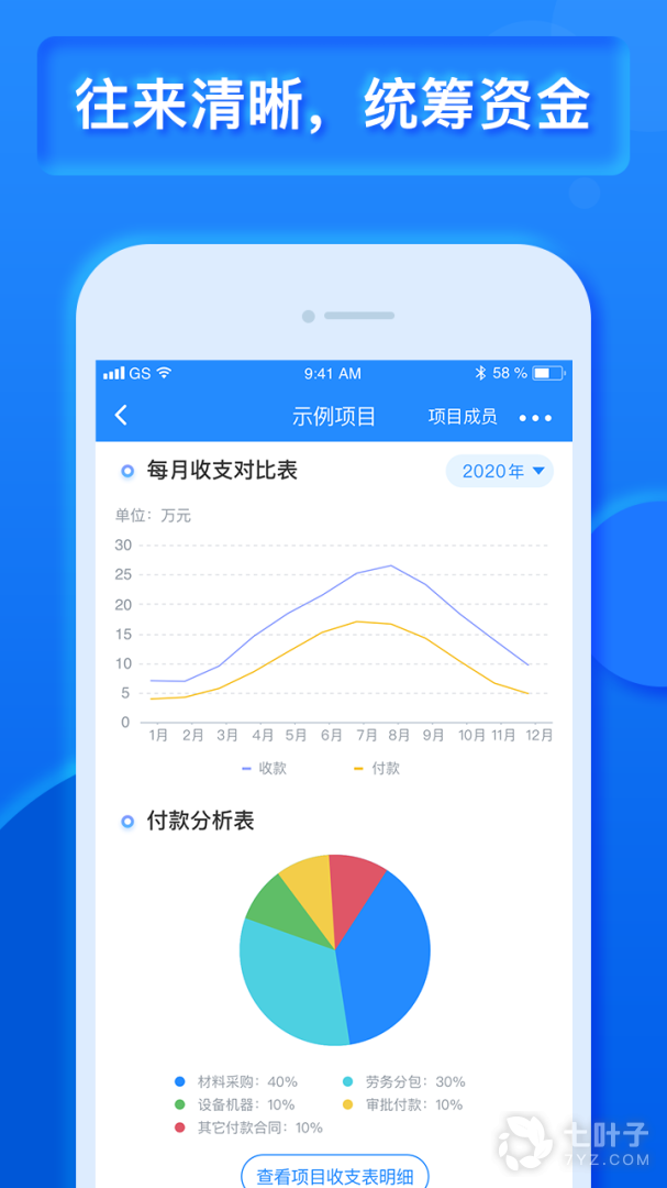 6、智能数据统计分析:乐建宝以项目为单位,将各业务条线数据进行多维度统计,事前计划、事中控制,决策分析省成本