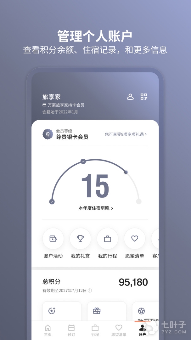 - 帐户活动:随时随地查看住宿晚数、积分及活动历史