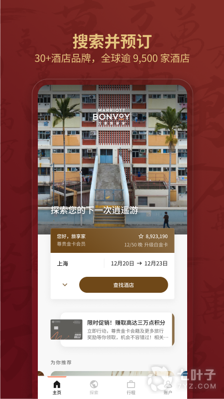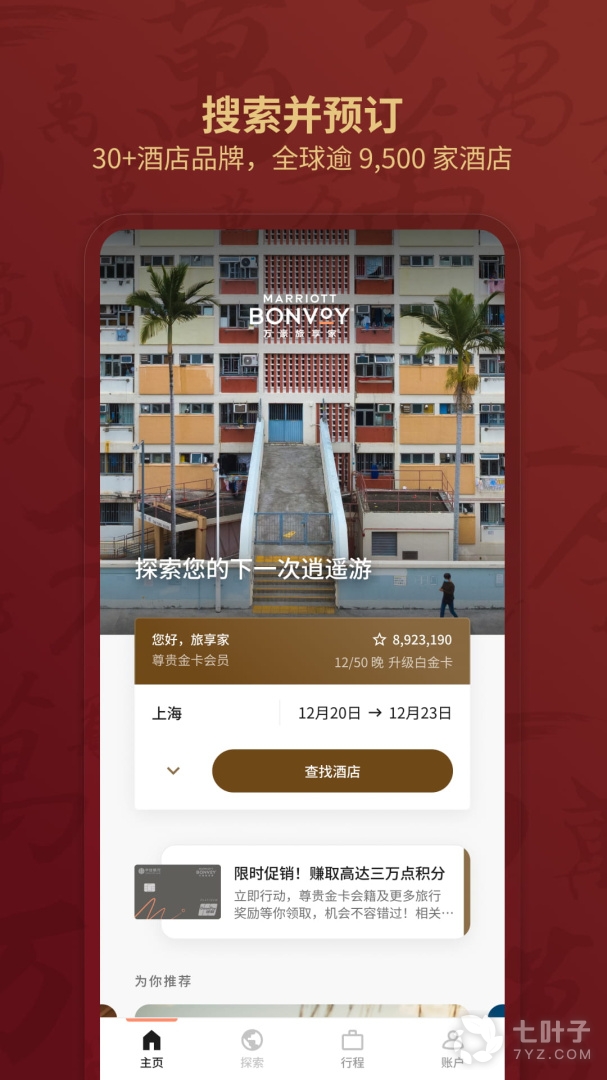 万豪旅享家 APP 专为万豪旅享家会员精心打造,可让您更加轻松地预订酒店、管理帐户和进行预订。您可在全球7,000多家酒店畅享会员专属礼遇,让一切尽在您的掌握中。