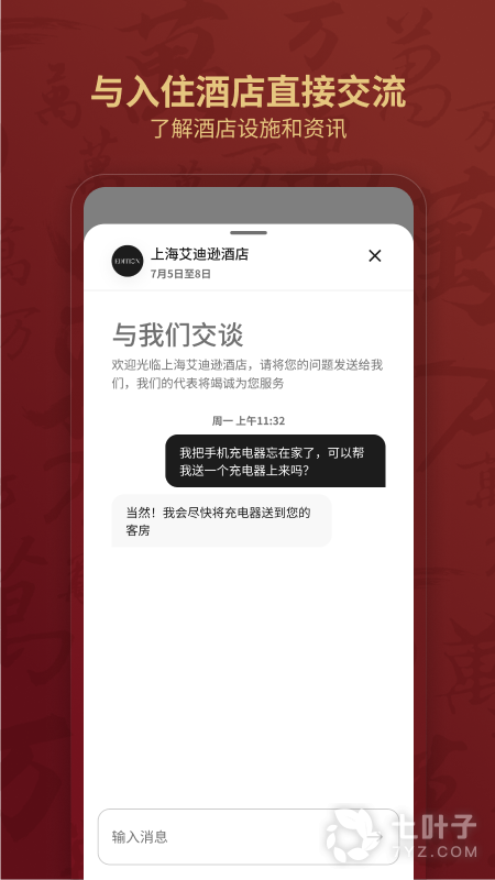 - 24 小时在线请求:通过聊天功能联系酒店员工获取更多服务