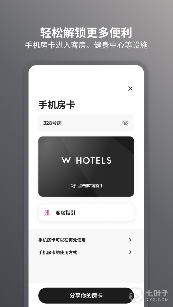 - 手机钥匙:您可在指定酒店使用您的手机开启房门或探索酒店其他区域