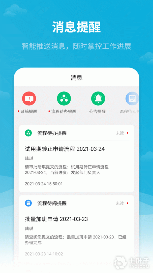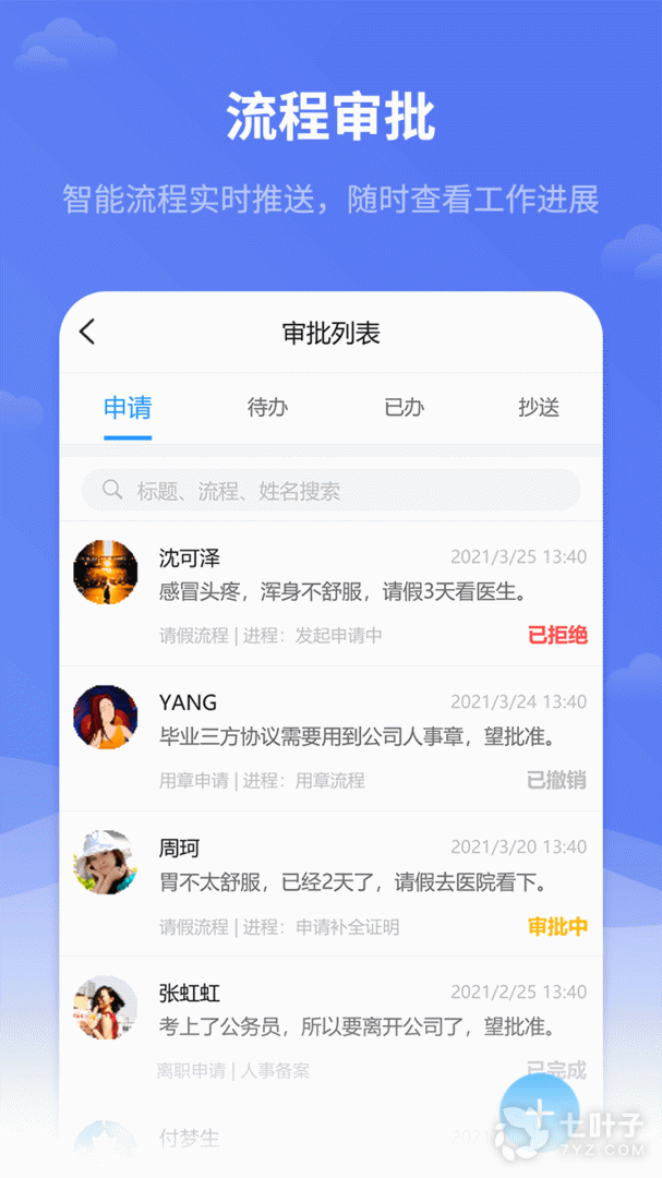 6、应用中有人事流程版块,用户能够看到详细的流程信息,快速了解
