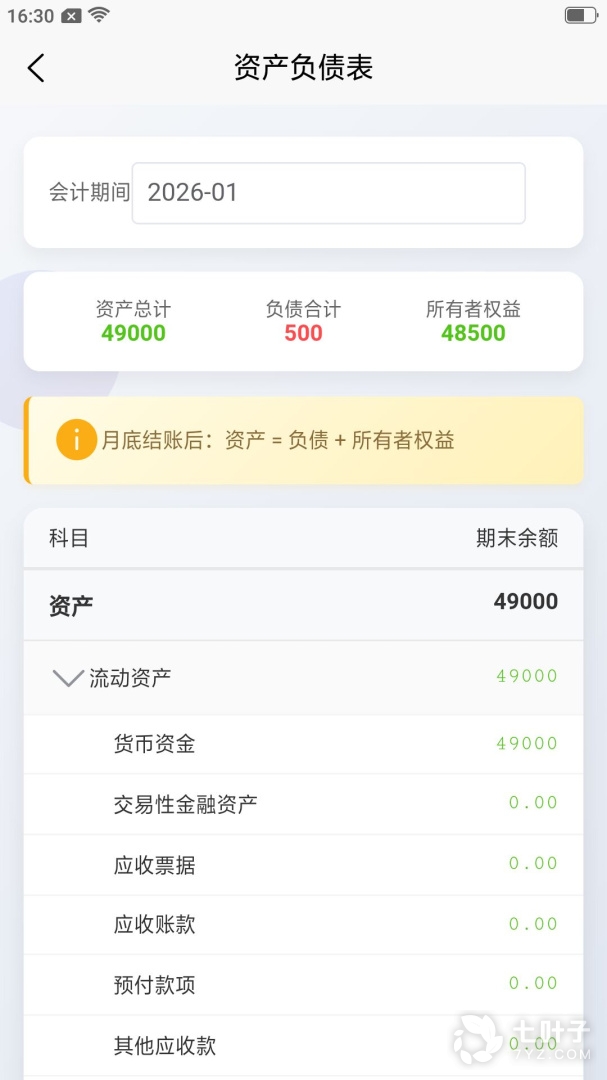 支持专业的科目余额表查看,支持每月一键科目余额结转