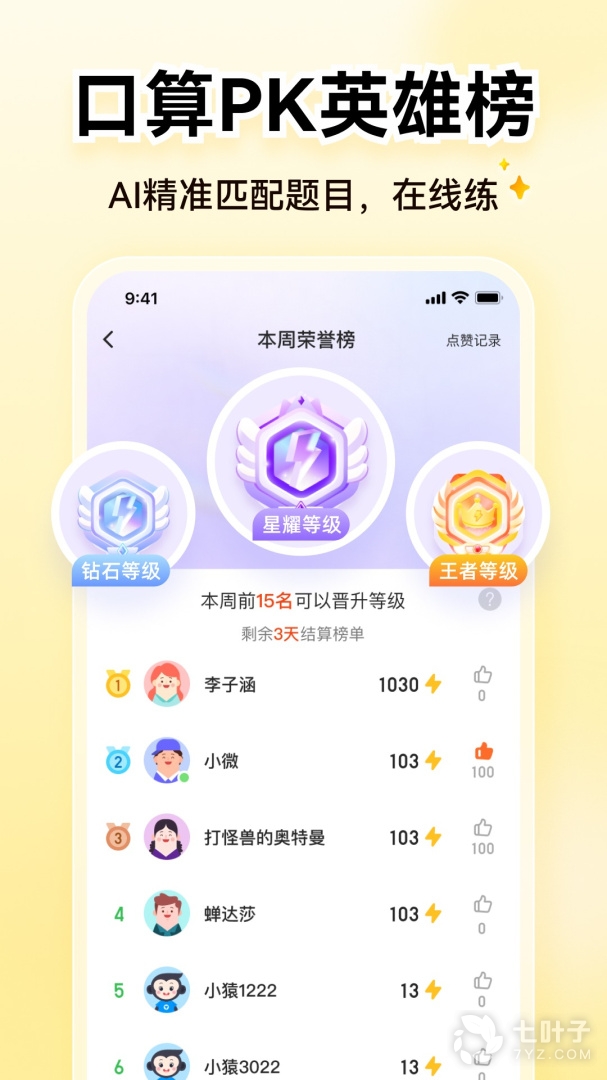 2、小猿口算一个专注于学前到6年级孩子数学学习教育的平台,有多个版本为用户提供,家长版,学习版,老师版等等,在线学习口算技巧,提高孩子学习兴趣,帮助家长省心教育