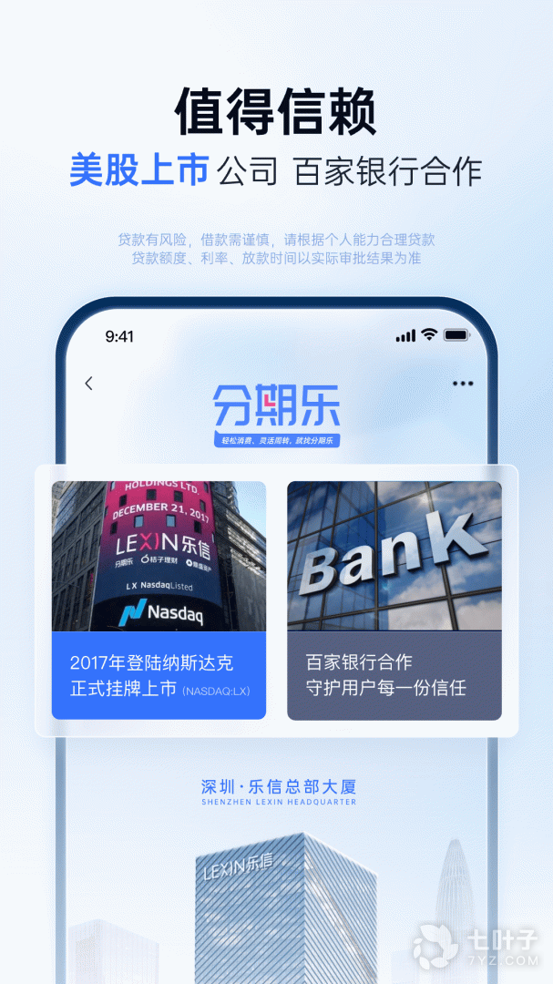 分期乐是乐信旗下倡导年轻人有度消费的分期消费平台,以更懂年轻人、更有安全保障、更有温度的产品体验和金融科技服务,让年轻人可以享受安全、稳定、便捷的现金借贷、分期购物和分期还款的服务,成为1亿用户的信赖之选。