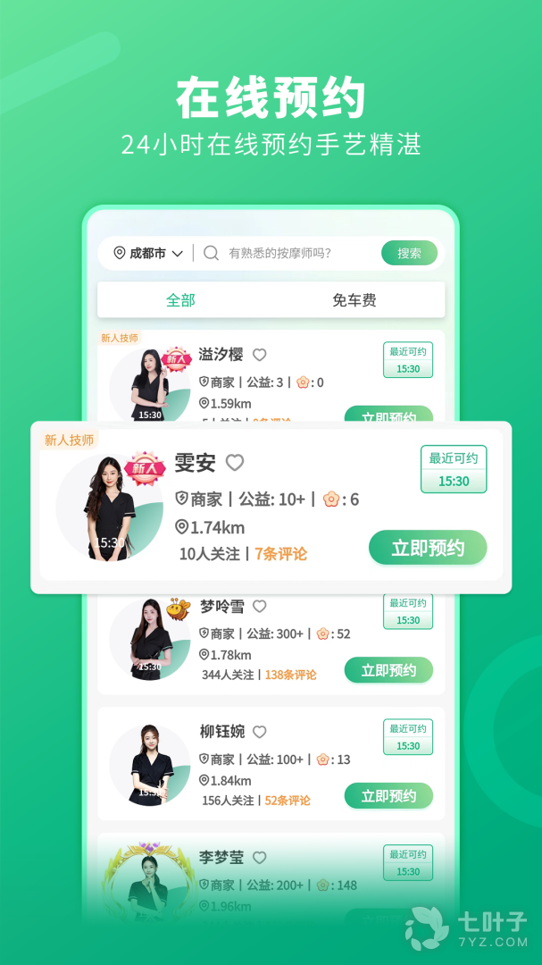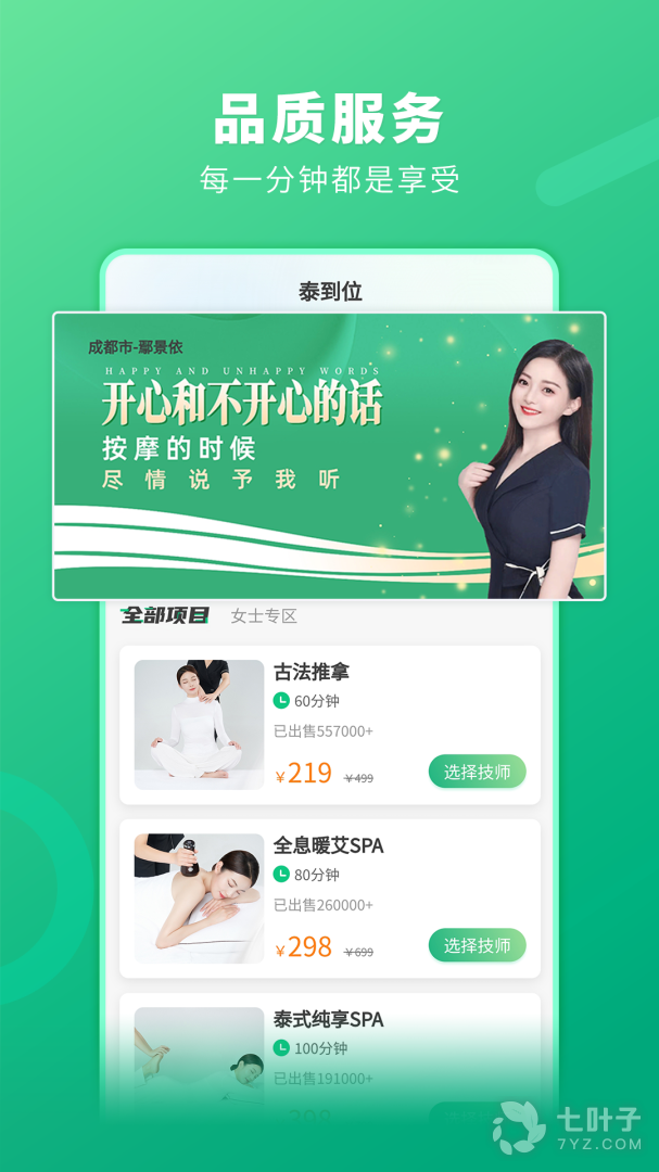 进入app后,在首页选择需要的服务项目,再选择心怡的服务技师后,设置好上门服务的时间,我们的技师将与您联系,在规定的时间内到达您所在的地点,为您提供上门的推拿服务,让您足不出户即可享受专业的推拿。