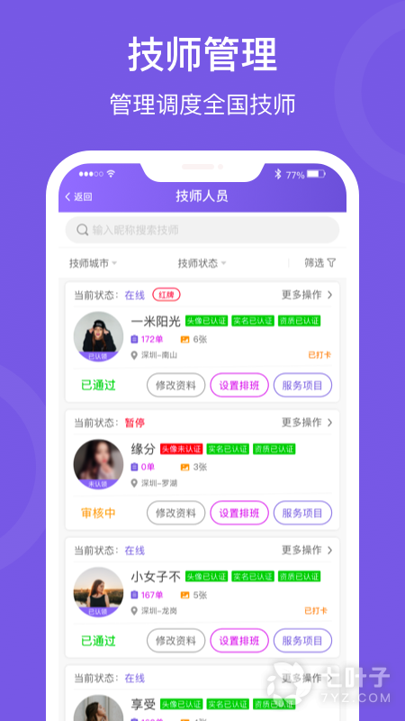 2、按个摩商户端,管理神器,轻松管理线上店铺;项目灵活,自主设置服务项目;技师管理,管理调度全国技师;在线接单,坐等来单着赚钱