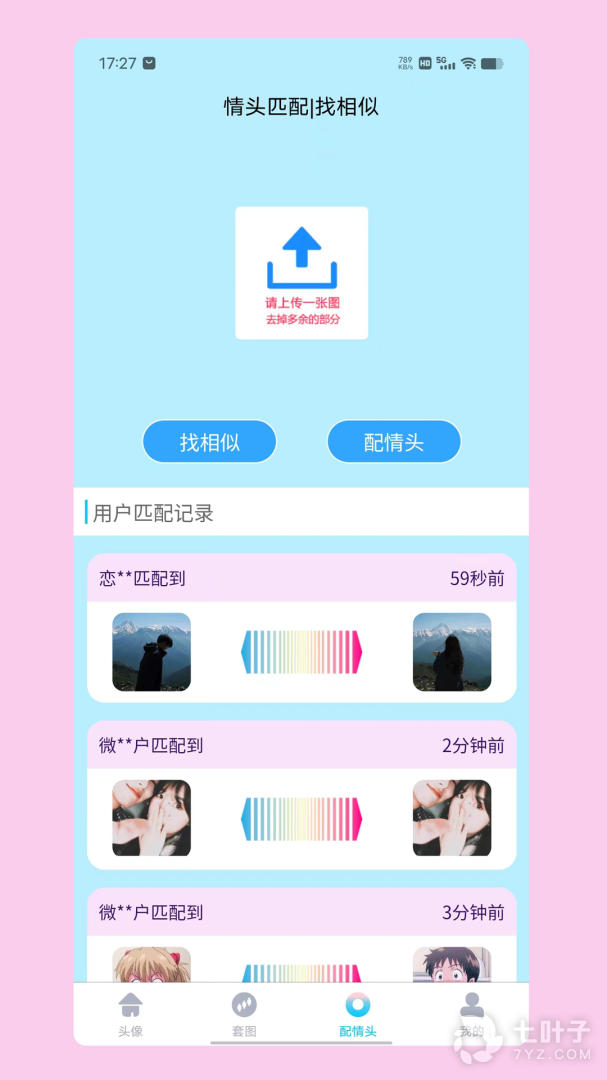 2、如果你想要找到另一半,那么就可以直接导入你手中的这张情头图片,然后平台就会为你进行自动的匹配,短时间内就会为你提供另外一张情头哦