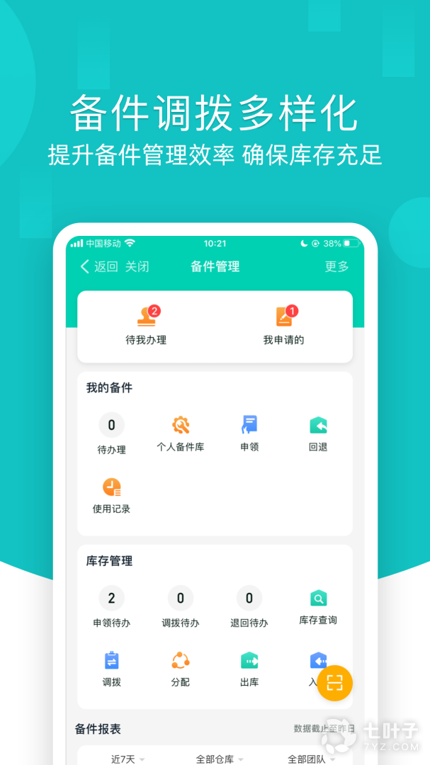 备件管理:自定义设置备件多级审批流程,建立不良品退换、服务商备件库管理等规范标准,实现多级仓库管理与异地备件调配,保障服务及时性。