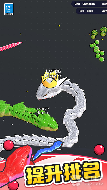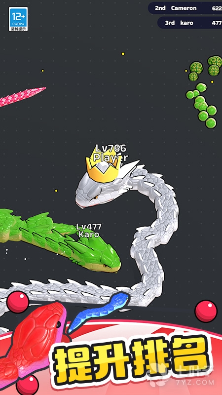 2、如果你还在回味经典游戏贪吃蛇的话就来试试这款晋级之作贪吃蛇对决,贪吃蛇对决是一款趣味休闲手游,游戏保留了原有的经典玩法的基础上实现多人互动同台竞技,大大提升了游戏的趣味性,多样的道具和炫彩的特效